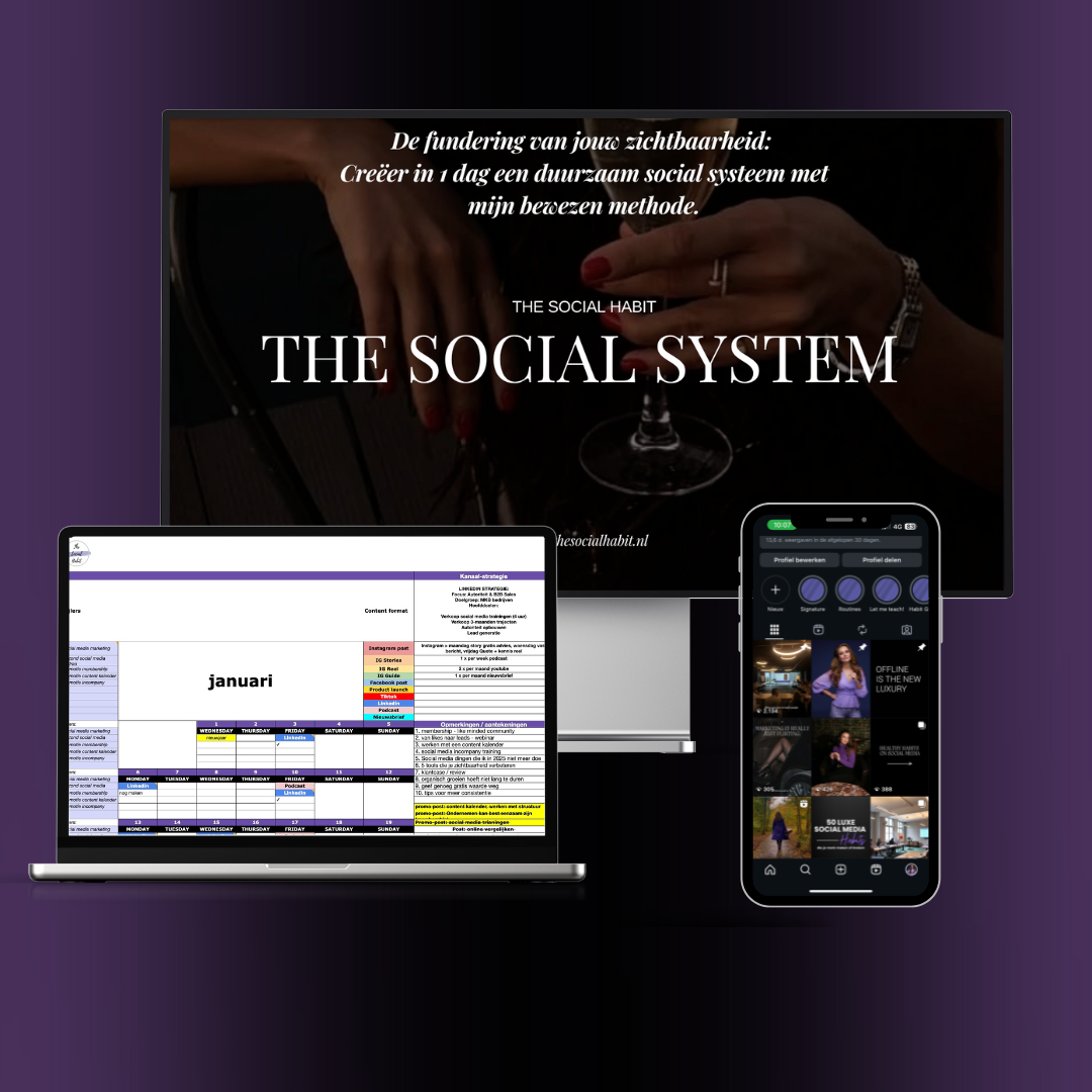 Met The Social System laat ik jou zien hoe ook jij structuur, overzicht én een slimme strategie combineert, zodat je consistent zichtbaar bent met minimale tijdsinvestering, maximale impact en vooral: meer rust in je hoofd en planning.